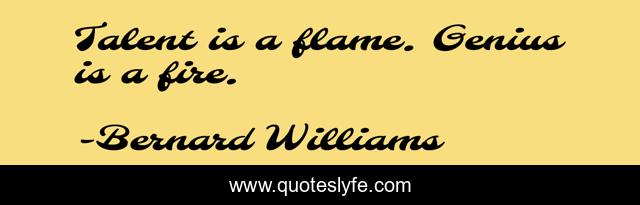This page presents the quote "Talent is a flame. Genius is a fire.". Author of this quote is Bernard Williams. This quote is about fire, genius, talent,.