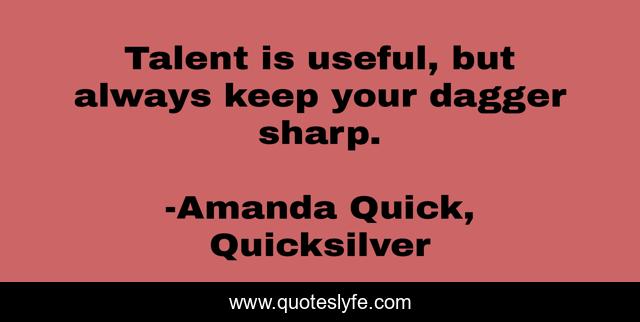 This page presents the quote "Talent is useful, but always keep your dagger sharp.". Author of this quote is Amanda Quick, Quicksilver. This quote is about self-protection, talent,.