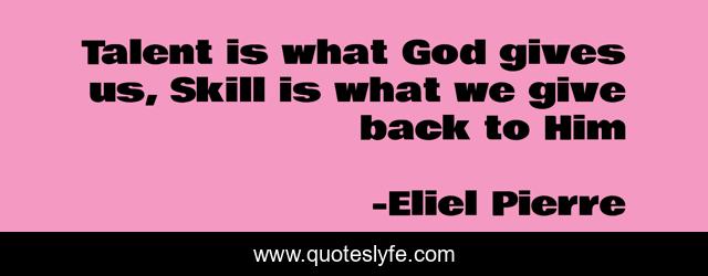 This page presents the quote "Talent is what God gives us, Skill is what we give back to Him". Author of this quote is Eliel Pierre. This quote is about skill, talent, hard-work,.