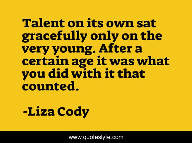 This page presents the quote "Talent on its own sat gracefully only on the very young. After a certain age it was what you did with it that counted.". Author of this quote is Liza Cody. This quote is about recognize, maximize,.