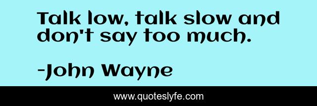 This page presents the quote "Talk low, talk slow and don't say too much.". Author of this quote is John Wayne. This quote is about slow, talk,.