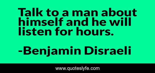 This page presents the quote "Talk to a man about himself and he will listen for hours.". Author of this quote is Benjamin Disraeli. .