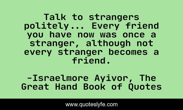 "Israelmore Ayivor, The Great Hand Book of Quotes Quotes." Quoteslyfe.com, 2025. Tue. 09 Dec. 2025. <https://www.quoteslyfe.com/quote/Talk-to-strangers-politely-Every-friend-you-120649>.
