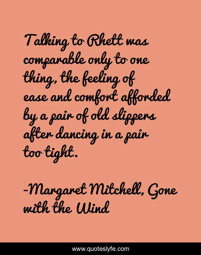 Talking to Rhett was comparable only to one thing, the feeling of ease and comfort afforded by a pair of old slippers after dancing in a pair too tight.