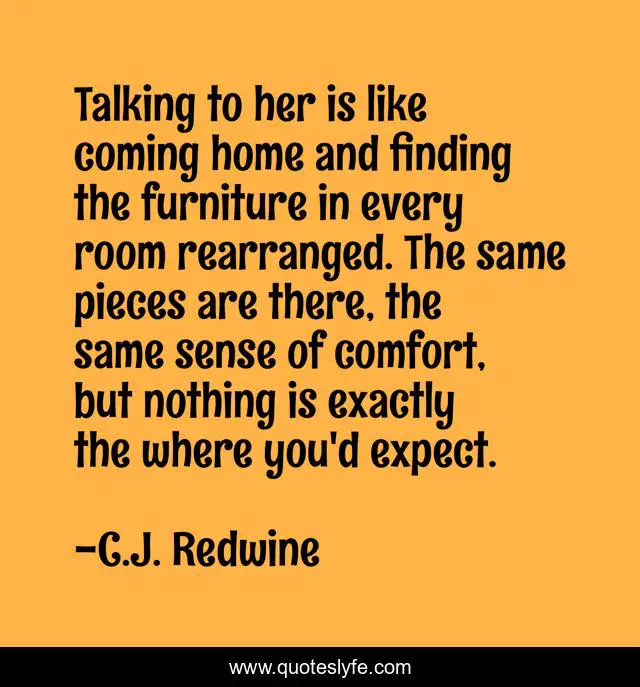 "C.J. Redwine Quotes." Quoteslyfe.com, 2025. Tue. 09 Dec. 2025. <https://www.quoteslyfe.com/quote/Talking-to-her-is-like-coming-home-247576>.