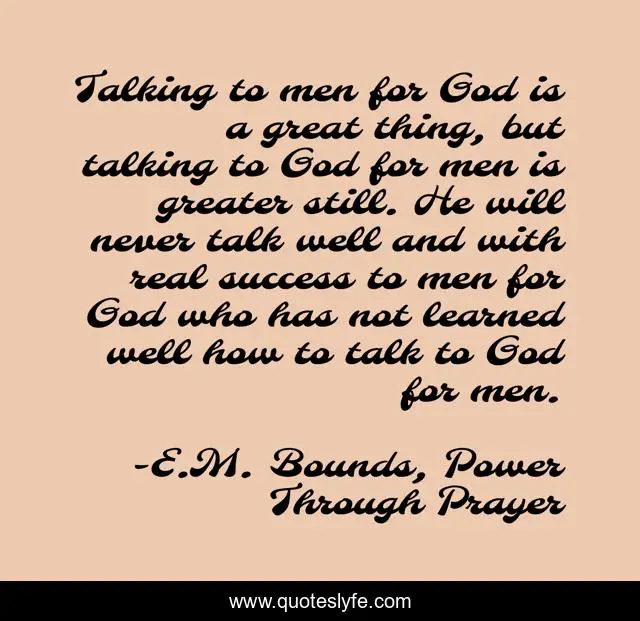 "E.M. Bounds, Power Through Prayer Quotes." Quoteslyfe.com, 2025. Sun. 07 Dec. 2025. <https://www.quoteslyfe.com/quote/Talking-to-men-for-God-is-a-114555>.