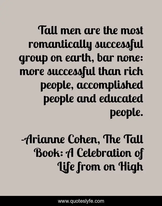 "Arianne Cohen, The Tall Book: A Celebration of Life from on High Quotes." Quoteslyfe.com, 2025. Sat. 06 Dec. 2025. <https://www.quoteslyfe.com/quote/Tall-men-are-the-most-romantically-successful-204092>.