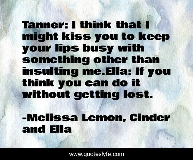 "Melissa Lemon, Cinder and Ella Quotes." Quoteslyfe.com, 2025. Mon. 08 Dec. 2025. <https://www.quoteslyfe.com/quote/Tanner-I-think-that-I-might-kiss-149148>.
