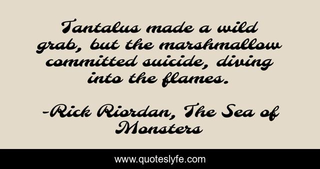 This page presents the quote "Tantalus made a wild grab, but the marshmallow committed suicide, diving into the flames.". Author of this quote is Rick Riordan, The Sea of Monsters. This quote is about funny, curse, comedy,.