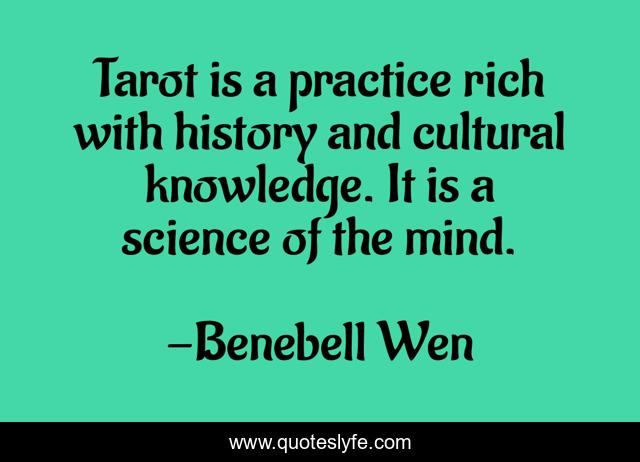This page presents the quote "Tarot is a practice rich with history and cultural knowledge. It is a science of the mind.". Author of this quote is Benebell Wen. This quote is about art, spirituality, culture, tarot-cards, tarot, divination,.