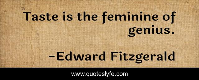 This page presents the quote "Taste is the feminine of genius.". Author of this quote is Edward Fitzgerald. .