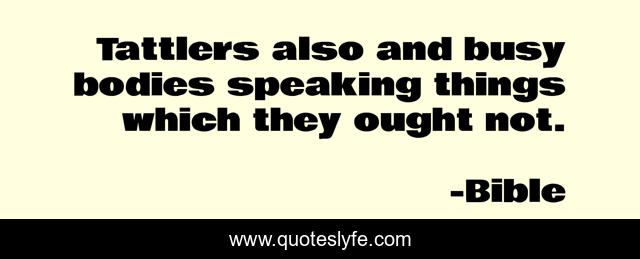 This page presents the quote "Tattlers also and busy bodies speaking things which they ought not.". Author of this quote is Bible. .
