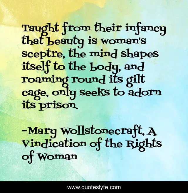 "Mary Wollstonecraft, A Vindication of the Rights of Woman Quotes." Quoteslyfe.com, 2025. Mon. 08 Dec. 2025. <https://www.quoteslyfe.com/quote/Taught-from-their-infancy-that-beauty-is-58463>.