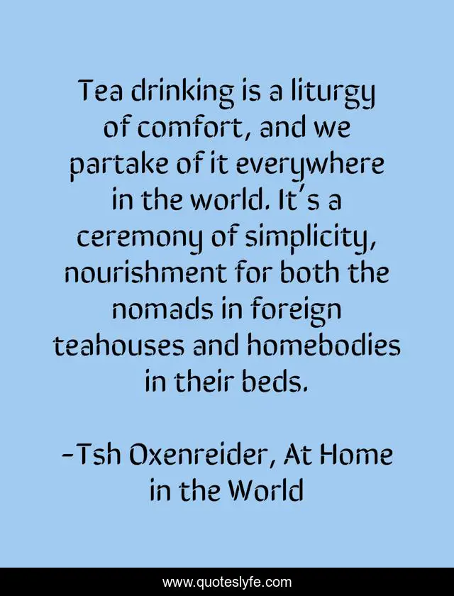 "Tsh Oxenreider, At Home in the World Quotes." Quoteslyfe.com, 2025. Fri. 05 Dec. 2025. <https://www.quoteslyfe.com/quote/Tea-drinking-is-a-liturgy-of-comfort-137049>.