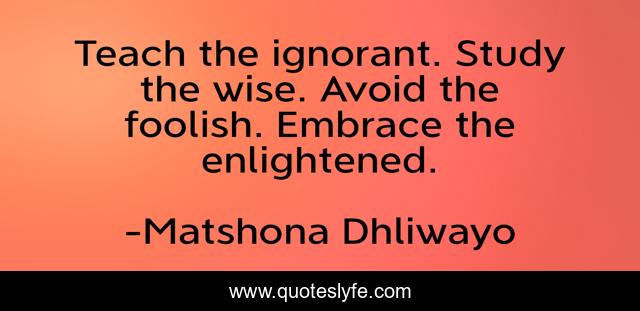 "Matshona Dhliwayo Quotes." Quoteslyfe.com, 2025. Fri. 05 Dec. 2025. <https://www.quoteslyfe.com/quote/Teach-the-ignorant-Study-the-wise-Avoid-57857>.