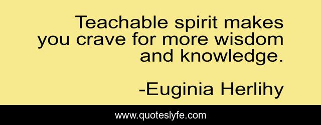 This page presents the quote "Teachable spirit makes you crave for more wisdom and knowledge.". Author of this quote is Euginia Herlihy. .