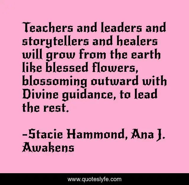 "Stacie Hammond, Ana J. Awakens Quotes." Quoteslyfe.com, 2025. Fri. 05 Dec. 2025. <https://www.quoteslyfe.com/quote/Teachers-and-leaders-and-storytellers-and-healers-98269>.