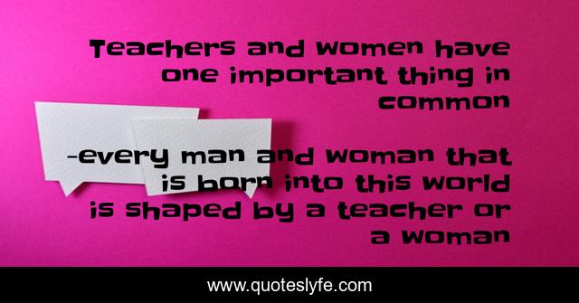 "every man and woman that is born into this world is shaped by a teacher or a woman Quotes." Quoteslyfe.com, 2025. Sun. 07 Dec. 2025. <https://www.quoteslyfe.com/quote/Teachers-and-women-have-one-important-thing-177347>.
