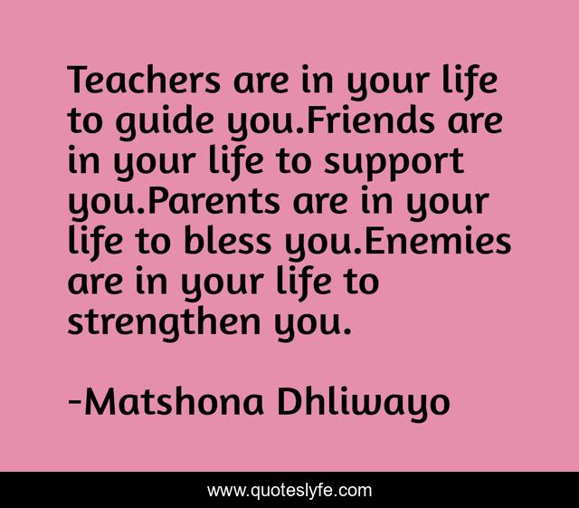 Teachers are in your life to guide you.Friends are in your life to support you.Parents are in your life to bless you.Enemies are in your life to strengthen you.