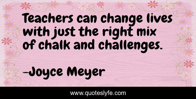 This page presents the quote "Teachers can change lives with just the right mix of chalk and challenges.". Author of this quote is Joyce Meyer. This quote is about challenges, teachers, change,.