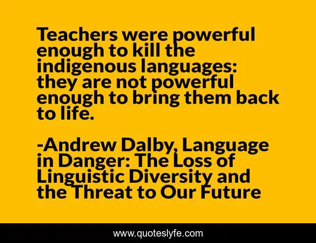 This page presents the quote "Teachers were powerful enough to kill the indigenous languages: they are not powerful enough to bring them back to life.". Author of this quote is Andrew Dalby, Language in Danger: The Loss of Linguistic Diversity and the Threat to Our Future. .