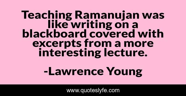 "Lawrence Young Quotes." Quoteslyfe.com, 2025. Fri. 05 Dec. 2025. <https://www.quoteslyfe.com/quote/Teaching-Ramanujan-was-like-writing-on-a-247273>.