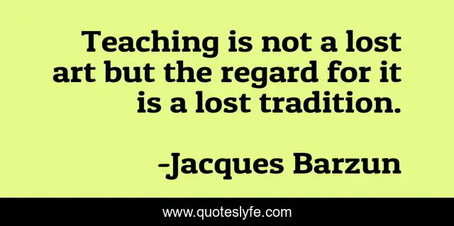 "Jacques Barzun Quotes." Quoteslyfe.com, 2025. Fri. 05 Dec. 2025. <https://www.quoteslyfe.com/quote/Teaching-is-not-a-lost-art-but-277296>.