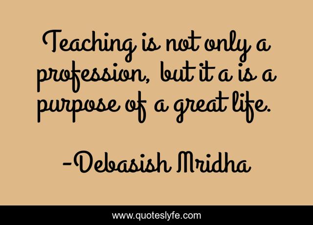 This page presents the quote "Teaching is not only a profession, but it a is a purpose of a great life.". Author of this quote is Debasish Mridha. This quote is about teacher-appreciation, philosophy, debasish-mridha, quotes, debasish-mridha-md, inspirational, teaching, enthusiasm, education,.