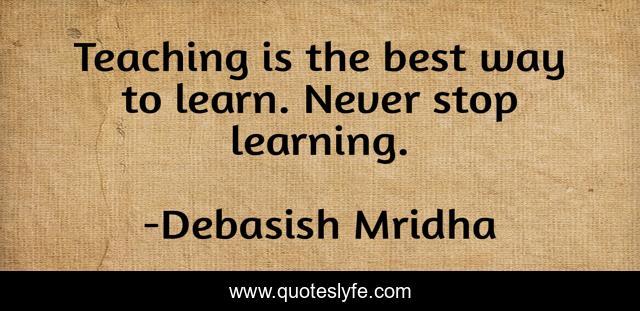 This page presents the quote "Teaching is the best way to learn. Never stop learning.". Author of this quote is Debasish Mridha. This quote is about inspirational, philosophy, debasish-mridha, quotes, debasish-mridha-md, learning, teaching, enthusiasm, education,.