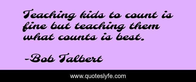"Bob Talbert Quotes." Quoteslyfe.com, 2025. Sat. 06 Dec. 2025. <https://www.quoteslyfe.com/quote/Teaching-kids-to-count-is-fine-but-264750>.