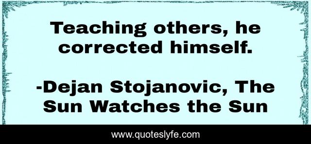 "Dejan Stojanovic, The Sun Watches the Sun Quotes." Quoteslyfe.com, 2025. Fri. 05 Dec. 2025. <https://www.quoteslyfe.com/quote/Teaching-others-he-corrected-himself-112408>.