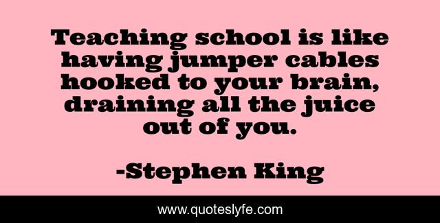 This page presents the quote "Teaching school is like having jumper cables hooked to your brain, draining all the juice out of you.". Author of this quote is Stephen King. .