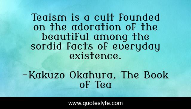 This page presents the quote "Teaism is a cult founded on the adoration of the beautiful among the sordid facts of everyday existence.". Author of this quote is Kakuzo Okahura, The Book of Tea. This quote is about tea, japan, culture,.