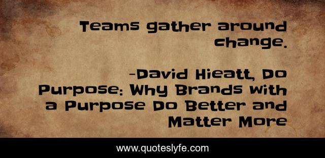 This page presents the quote "Teams gather around change.". Author of this quote is David Hieatt, Do Purpose: Why Brands with a Purpose Do Better and Matter More. .