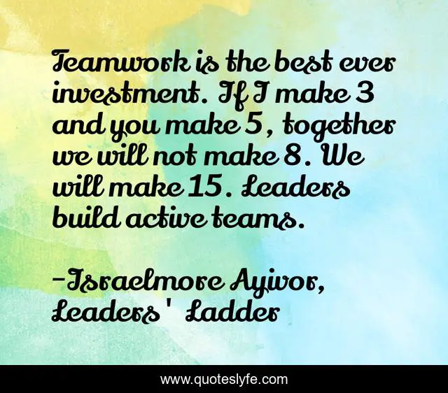 "Israelmore Ayivor, Leaders' Ladder Quotes." Quoteslyfe.com, 2025. Mon. 08 Dec. 2025. <https://www.quoteslyfe.com/quote/Teamwork-is-the-best-ever-investment-If-65088>.