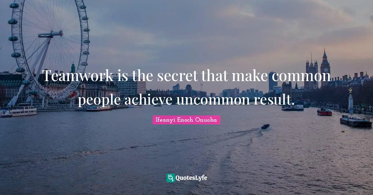 "Ifeanyi Enoch Onuoha Quotes." Quoteslyfe.com, 2025. Thu. 25 Dec. 2025. <https://www.quoteslyfe.com/quote/Teamwork-is-the-secret-that-make-common-147480>.