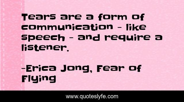 This page presents the quote "Tears are a form of communication - like speech - and require a listener.". Author of this quote is Erica Jong, Fear of Flying. This quote is about sadness, tears, emotions,.