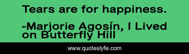 "Marjorie Agosín, I Lived on Butterfly Hill Quotes." Quoteslyfe.com, 2025. Mon. 08 Dec. 2025. <https://www.quoteslyfe.com/quote/Tears-are-for-happiness-229082>.