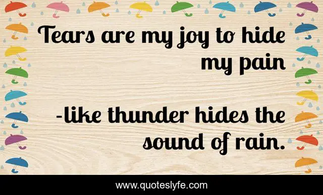 "like thunder hides the sound of rain. Quotes." Quoteslyfe.com, 2025. Fri. 05 Dec. 2025. <https://www.quoteslyfe.com/quote/Tears-are-my-joy-to-hide-my-97739>.