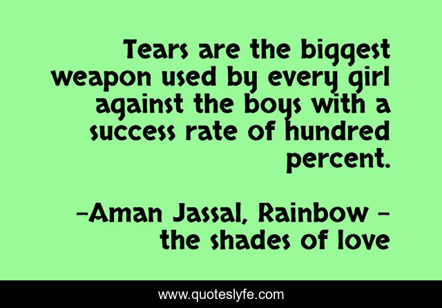 "Aman Jassal, Rainbow - the shades of love Quotes." Quoteslyfe.com, 2025. Fri. 05 Dec. 2025. <https://www.quoteslyfe.com/quote/Tears-are-the-biggest-weapon-used-by-225753>.