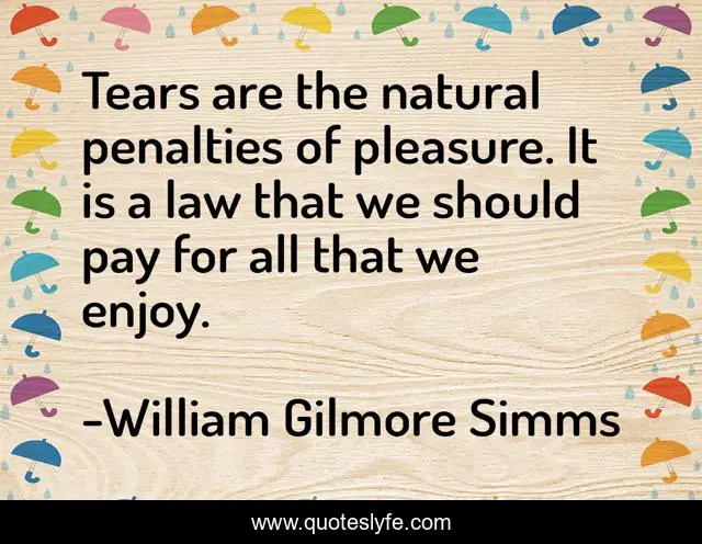 This page presents the quote "Tears are the natural penalties of pleasure. It is a law that we should pay for all that we enjoy.". Author of this quote is William Gilmore Simms. This quote is about enjoy, tears, law,.