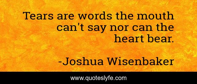 "Joshua Wisenbaker Quotes." Quoteslyfe.com, 2025. Sat. 06 Dec. 2025. <https://www.quoteslyfe.com/quote/Tears-are-words-the-mouth-can-t-124281>.