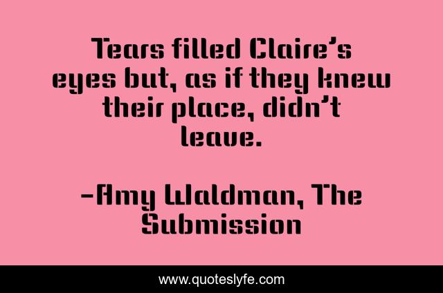 This page presents the quote "Tears filled Claire’s eyes but, as if they knew their place, didn’t leave.". Author of this quote is Amy Waldman, The Submission. .