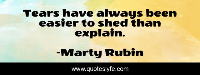 This page presents the quote "Tears have always been easier to shed than explain.". Author of this quote is Marty Rubin. This quote is about emotion, grief, tears, spontaneity,.