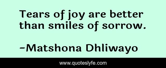 "Matshona Dhliwayo Quotes." Quoteslyfe.com, 2025. Fri. 05 Dec. 2025. <https://www.quoteslyfe.com/quote/Tears-of-joy-are-better-than-smiles-201191>.