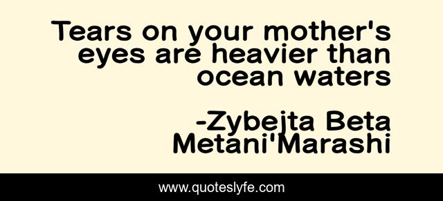 This page presents the quote "Tears on your mother's eyes are heavier than ocean waters". Author of this quote is Zybejta Beta Metani'Marashi. .