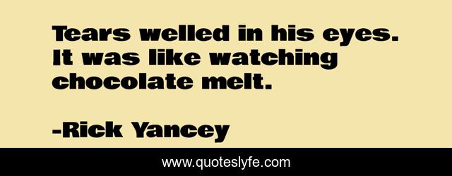 This page presents the quote "Tears welled in his eyes. It was like watching chocolate melt.". Author of this quote is Rick Yancey. This quote is about eyes, melt, chocolate,.