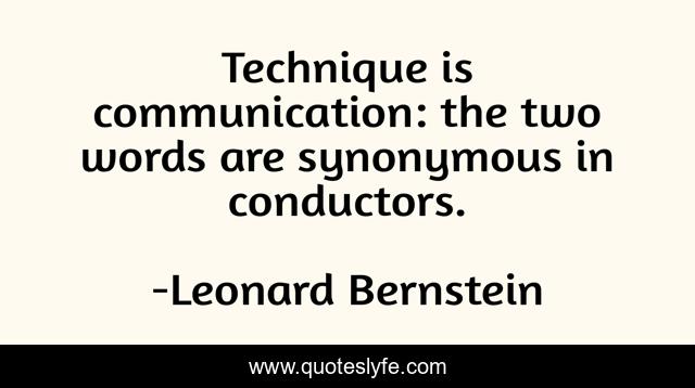 This page presents the quote "Technique is communication: the two words are synonymous in conductors.". Author of this quote is Leonard Bernstein. This quote is about technique, two, words,.