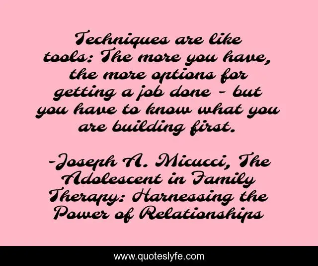 "Joseph A. Micucci, The Adolescent in Family Therapy: Harnessing the Power of Relationships Quotes." Quoteslyfe.com, 2025. Sat. 06 Dec. 2025. <https://www.quoteslyfe.com/quote/Techniques-are-like-tools-The-more-you-103418>.