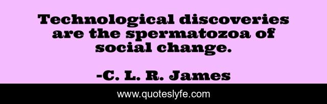 This page presents the quote "Technological discoveries are the spermatozoa of social change.". Author of this quote is C. L. R. James. This quote is about technological, social,.
